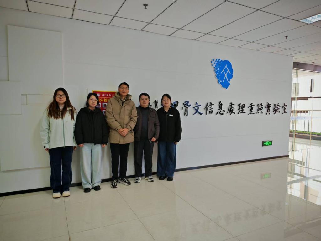 会后,熊晶教授率队参观了安阳师范学院甲骨文信息处理教育部重点实验室。在参观过程中,团队沉浸式体验了实验室的先进设施与创新成果,双方就甲骨文AI智能化研究的最新进展展开了热烈讨论。此次深入交流不仅拓宽了研究视野,更为双方未来的协同创新搭建了桥梁。