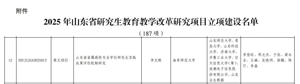 图3 2025年山东省研究生教育教学改革研究项目立项建设名单