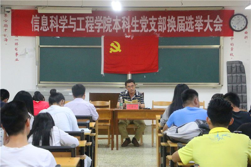 为加强党组织的建设,健全党组织的选举制度,为党的内部提供先进的思想观念。信息科学与工程学院本科生党支部换届选举大会于2016年9月13日19:00正式开始。信息科学与工程学院党委副书记颜景民,团委书记毕文波,辅导员姜振栋、于运清、鲁瑞丽参与了此次会议。