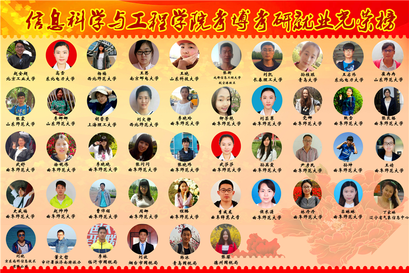 遵从“学而不厌,诲人不倦”的校训,我院本着注重提升学生个人综合素质的教学宗旨,培养出2016届优秀毕业生。在以往的基础上,我院今年考博考研就业的人数有所提升,其中,考取博士生8人,研究生79人,辽宁省气象信息中心1人,京东尚科信息技术有限公司1人,审计署驻济南特派办1人,临沂国税局1人,青岛国税局1人,烟台国税局1人,德州国税局1人。