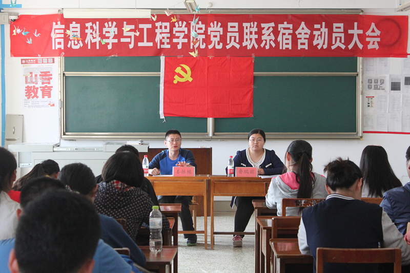 为充分发挥党员在宿舍的模范作用和桥梁作用,增进党群沟通搭建新的平台,10月21日14:00,曲阜师范大学信息科学与工程学院于C楼406教室顺利召开党员联系宿舍动员大会。信息科学与工程学院辅导员姜振栋老师、辅导员鲁瑞丽老师出席了本次会议。