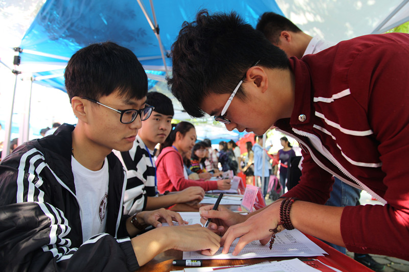 进入校门,校门口负责引领工作的志愿者热情地带领新生参观了校园,讲解学院的历史、师资、专业等,并对新生及新生父母的问题耐心地给予了作答,其中新生父母最关心的是食宿问题和安全问题,新生则更倾向学院师资和课程情况。新生入学登记,学院要求新同学独立完成,实现脱离父母的第一步,检查证件、发放资料、校对班级、领取通知条、填写资料、手机卡激活、宿舍通知、免费宽带登记学员提供一条龙服务。接过家长的接力棒,师哥师姐将服务进行到底。
