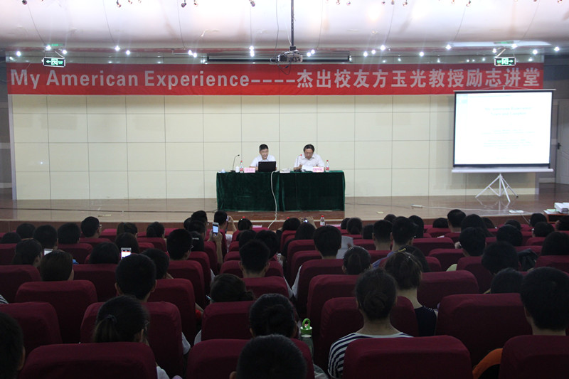 方玉光教授为观众们讲述自己在美国的艰苦历程,结合自身经历指出“中国学生中普遍存在的不自信现象”并告知同学们“人的一生要有几个知己朋友”,以及强调了“坚持的重要性”。在随后的问答环节中同学们就如何选择自身发展方向以及如何提升自己向方玉光教授提问,方玉光教授一一作答。在微博互动环节中,网友提问方玉光教授让他一直坚持的理由是什么。方玉光教授回答“兴趣是坚持的动力,也是选择的关键,要做自己喜欢的事,坚持自己感兴趣的选择”。方教授的回答也为在场的同学们解答了在学习,奋斗过程中的疑惑。会后马东骅副校长亲自为方玉光教授颁发铜模手印并赠送纪念品以作纪念。