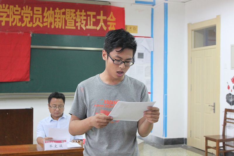 会前,颜景民书记严肃强调了大会纪律。大会开始后,全体预备党员依次上台表明自己加入中国共产党的决心,并宣誓坚决维护中国共产党,宣读了转正申请书。书中,汇报了个人在预备期为党所作的贡献,表明了拥护中国共产党的决心,申请转正。随后,由本院正式党员无记名投票表决。最后,颜景民书记进行了总结,对各位加入共产党的同学们表示欢迎和祝贺,并希望各位党员认真践行入党承诺,自觉遵守党的纪律,在日常工作、学习、生活中严以律己、以身作则,充分发挥党员的模范带头作用。