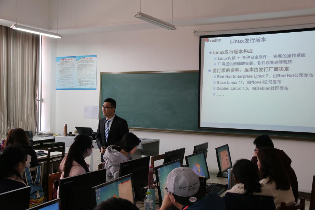 2017年3月4日上午8:00开始,山东博赛网络公司张金涛工程师在JS324实验室,对我院14网络工程专业学生进行网络技能培训,本次培训学习持续15天,具体培训内容是红帽Linux的使用与应用。内容涵盖了Linux操作系统命令、网络服务器配置及其在网络工程建设中的应用等。激发了同学们学习网络知识的欲望,促进了同学们对当前最新网络从业技能的认识,对学生今后的就业奠定了良好的基础。