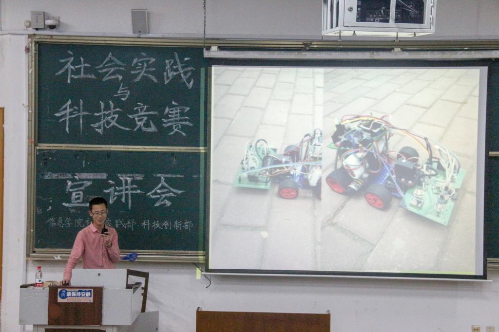 为了培养学生的实践能力和创新精神,信息科学与工程学院于6月15日晚在E101召开社会实践与科技竞赛宣讲会,出席本次大会的是团委书记毕文波及信息科学与工程学院第四届学生会主席团成员及各部部长。