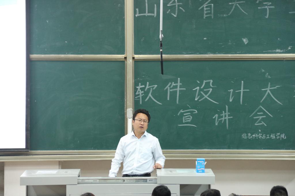 为开拓同学们的创新思维,进一步培养同学们的实践能力,5月13日晚上七点,我院于E105教室召开第17届山东省大学生软件设计大赛的巡回报告会,我院诚邀到济南计算机学会办公室副主任尚玉新作宣讲报告,团委书记毕文波主持本次报告会,我院学生踊跃参加。
