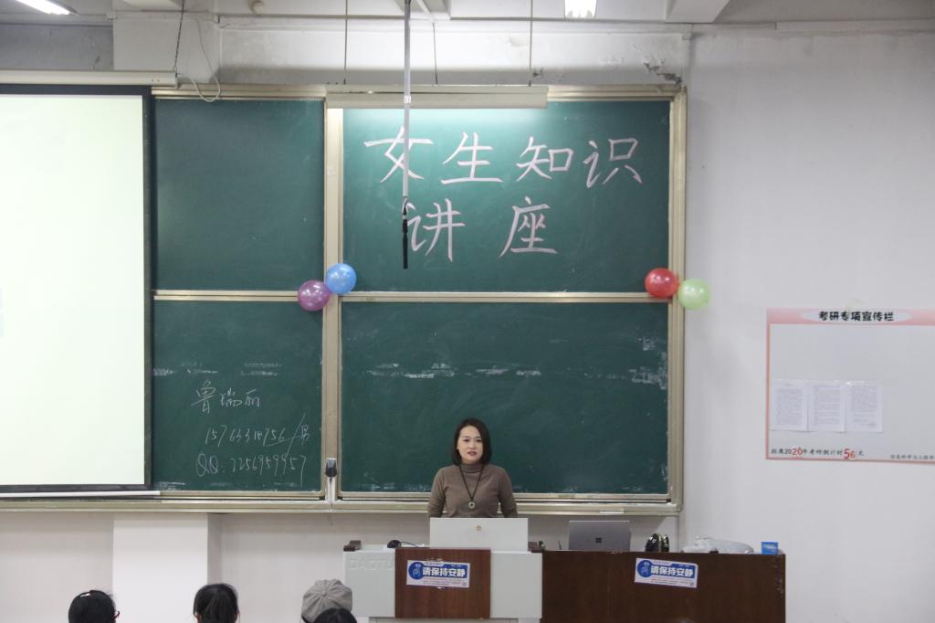 为关爱关注女生安全,树立女生自立、自强、自爱的意识。2019年11月10日晚,由信息科学与工程学院女生部举办的“你我正芳华”——女生讲座于JE104顺利召开,我院2018级辅导员鲁瑞丽老师出席讲座,19级全体女生参加本次活动。