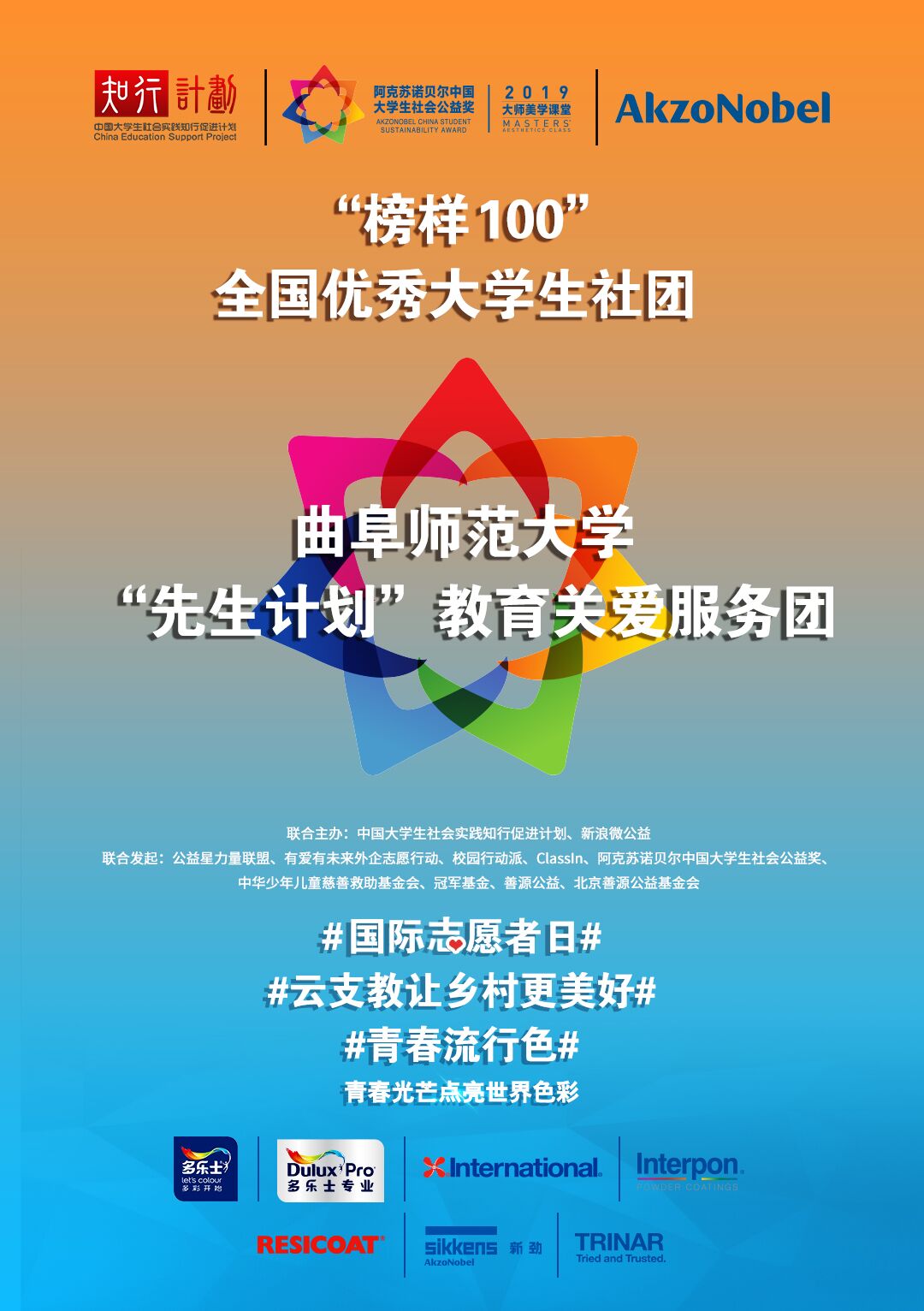 信息科学与工程学院辅导员鲁瑞丽指导的“先生计划”教育关爱服务团被评为“榜样100”全国优秀大学生社团。
