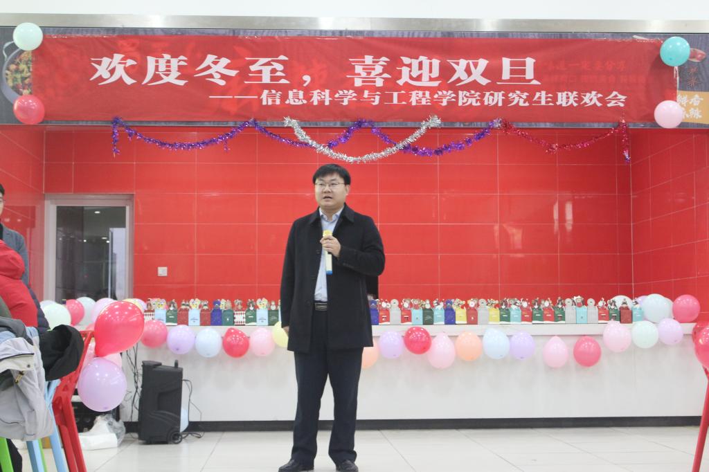 2019年12月22日,信息科学与工程学院研究生“欢度冬至,喜迎双旦”联谊会在四季餐厅二楼举行。信息科学与工程学院院长助理王茂励老师、研究生辅导员尚军亮老师、董兆安老师以及全体研究生参加了本次活动。