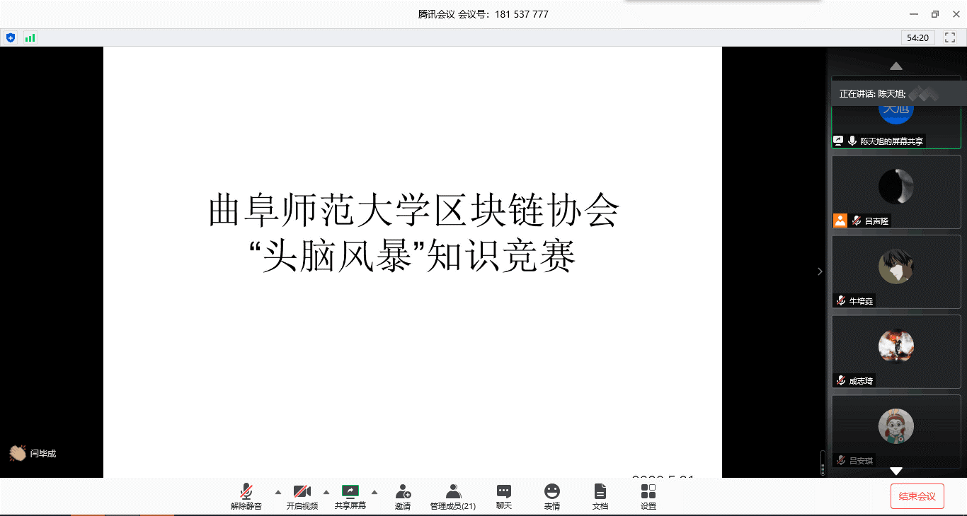 为拓宽同学们的知识层面,顺应学院的发展趋势,2020年5月31日,曲阜师范大学区块链协会顺利举办首届"区块链知识头脑风暴比赛”。本次比赛采用线上会议(即腾讯会议)的方式进行,信息科学与工程学院协会指导老师王伊蕾副教授、协会指导老师李涛副教授以及协会主要成员出席并担任评委,广大学生踊跃报名,积极参加。