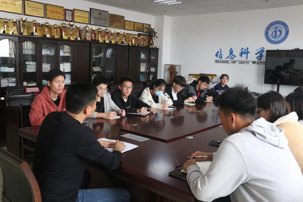 2018级辅导员纪玉超于JC1011组织召开体育队伍管理相关会议,学院学生会分管副主席、各体育队负责人参加本次会议。