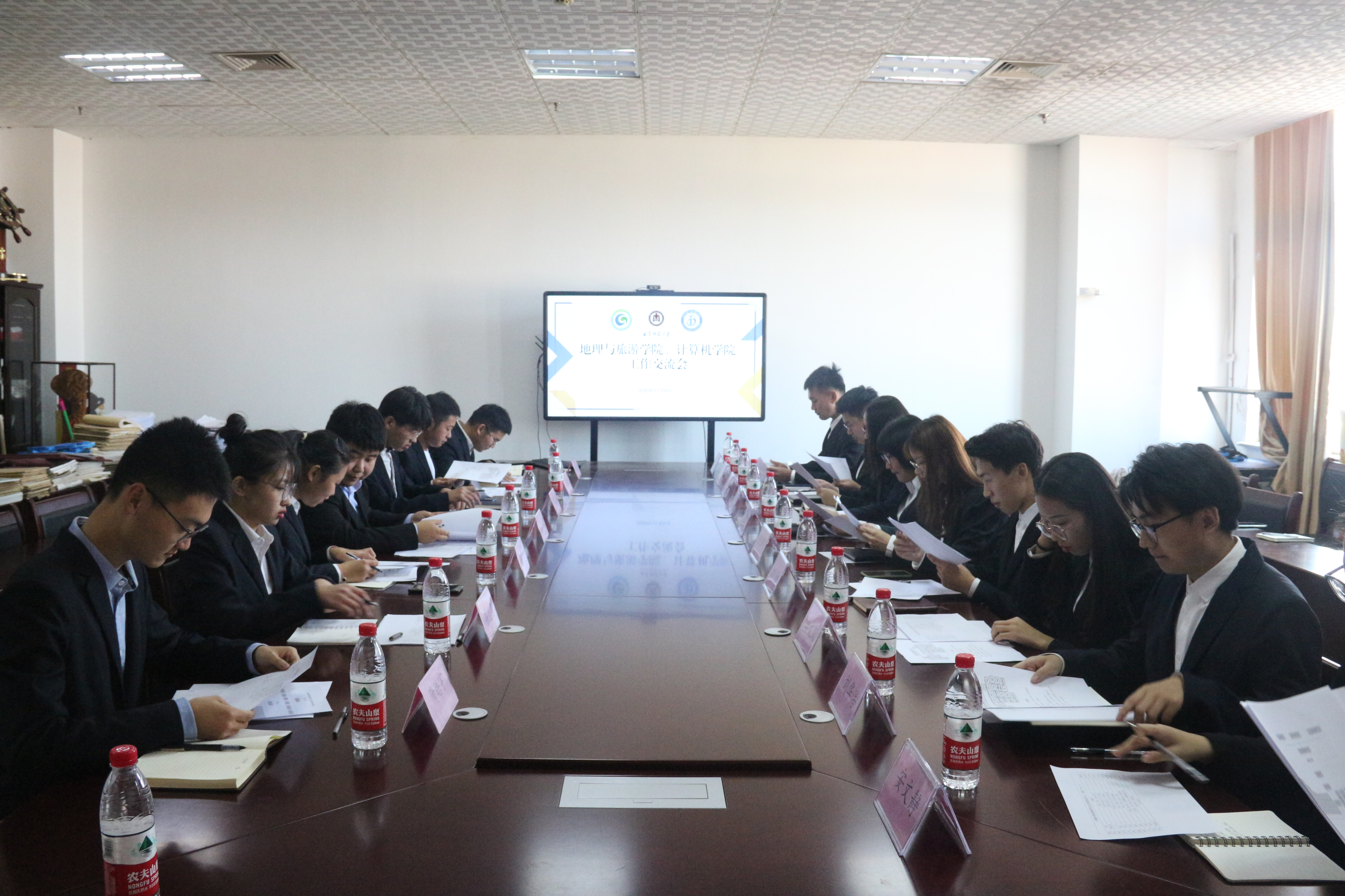 与地理与旅游学院工作交流会。学院党委副书记肖龙航、2017级辅导员孙宇、2018级辅导员纪玉超出席会议,地理与旅游学院、av大平台