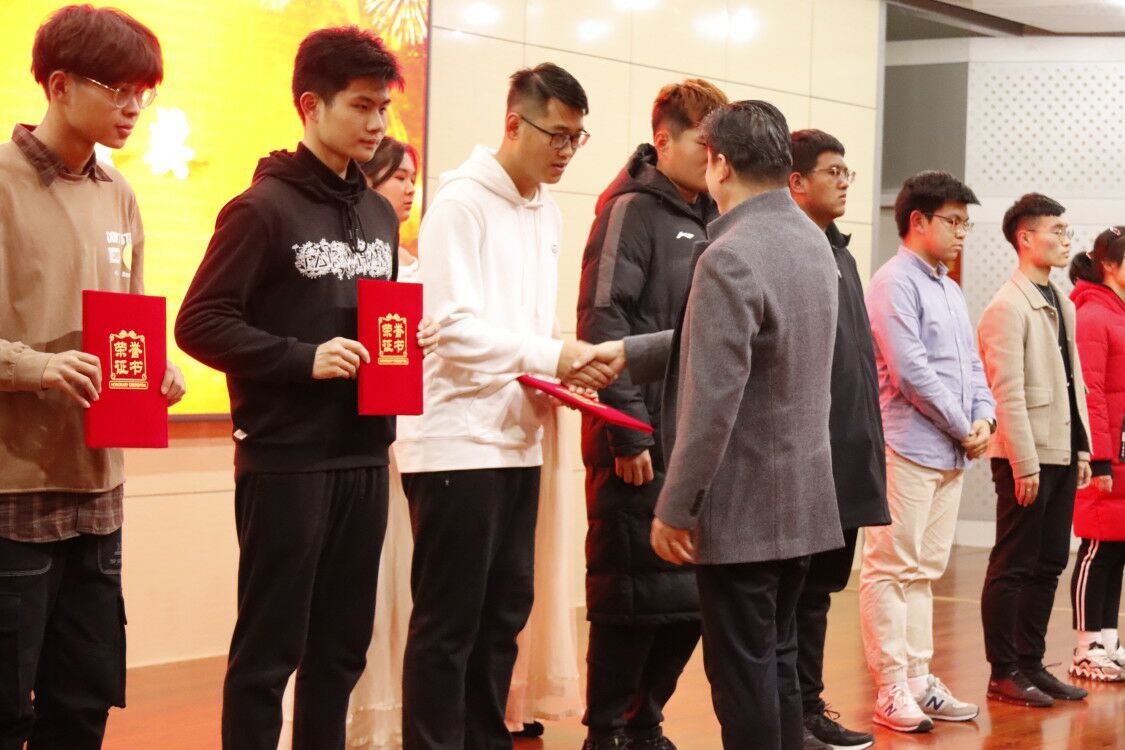 随着啦啦队的激情开场,闭幕式正式开始。幽默搞笑的相声、婉转悠扬的探戈舞曲,将大家带入美妙的艺术境界;男女混搭的歌唱表演、激情澎湃的爵士舞、旋律动听的歌曲、风趣幽默的小品,映射当今社会的现实问题,展现我院学子风采;一曲《春风十里》,温暖人心。师生一齐参加的叠被子大赛激动人心,大赛要求选手在规定时间范围内将被子叠成豆腐块,棱角分明,表面平整。活跃的比赛氛围,将晚会推向高潮。随后,优秀PPT的展示,展现出了寝室良好的生活作风与精神风貌。节目、比赛过程中,穿插颁奖仪式,王光江、肖龙航、刘蓉、毕文波、张恒通五位领导老师受邀为颁奖嘉宾,先后为安全知识竞赛获奖同学、优秀宿舍、优秀舍长、优秀舍规、优秀PPT获奖同学、优秀舍标、宿舍好声音、叠被子大赛获奖同学以及优秀节目获奖同学颁发证书。最后,一首饱含着同学们铿锵自信和对未来的无限希望的《奔跑》合唱,为本次晚会画上圆满的句号。