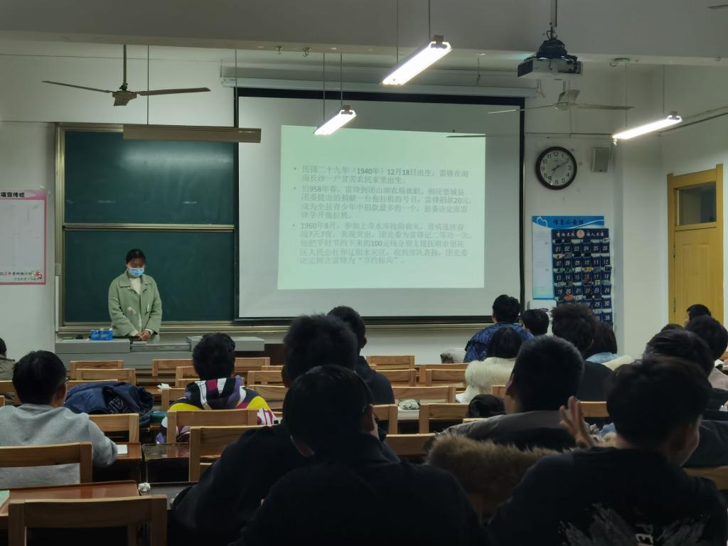 活动形式以班级为单位,各班团支书组织同学们利用课余时间观看雷锋事迹纪录片以及雷锋个人成长故事。观看过程中,同学们细细聆听雷锋故事,认真学习雷锋的螺丝钉精神,领悟雷锋全心全意为人民服务的志愿服务精神。当看到雷锋同志因公牺牲时,同学们都热泪盈眶,或许,这就是无私奉献的精神力量。可歌可泣的视频资料使同学们深刻体会到雷锋精神的内涵并强烈感受到志愿服务的意义,在同学们心中,埋下志愿服务、热心公益的种子,对志愿服务起到了良好的宣传作用。雷锋的事迹告诉我们一个人的力量是有限的,但是为人民服务的心却是无限的,每一名同学都立志向雷锋同志学习,多帮助身边的人,做一些力所能及的事。