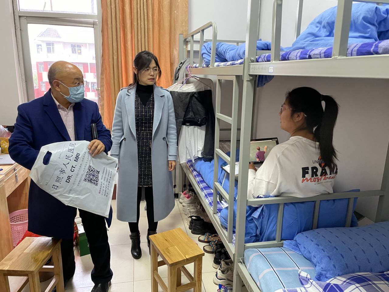 一直以来,学院始终高度重视学生宿舍安全管理,此次安全检查工作主要对假期期间违章用电、防火防盗等进行排查,深入查找各宿舍在安全方面存在的漏洞与不足,对存在的安全隐患进行记录整理。在走访宿舍、排查隐患的过程中,两位老师逐一查看宿舍内部的防护措施,更是对宿舍插排的使用情况进行仔细检查,叮嘱学生要加强假期安全防范意识,注意宿舍用电安全,自觉遵守学校的规章制度,防止事故的发生,并叮嘱假期外出同学一定要勤洗手,在公共场合要戴好口罩。同时两位老师为春训训练中受伤的同学送去礼物,表达了关心,并对因离家较远假期无法回家的外省同学表达了关心和慰问。