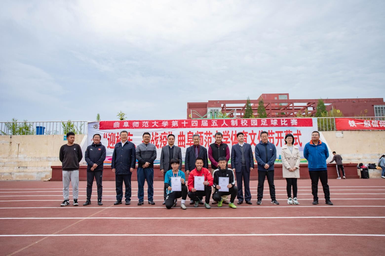 4月21日下午15:10,曲阜师范大学第十四届五人制男足总决赛于西操一号场地正式打响,本次比赛由我院的跟党走队对战教职工队。