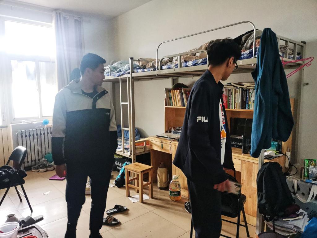 宿管部成员深入学生宿舍开展假期前安全排查工作。