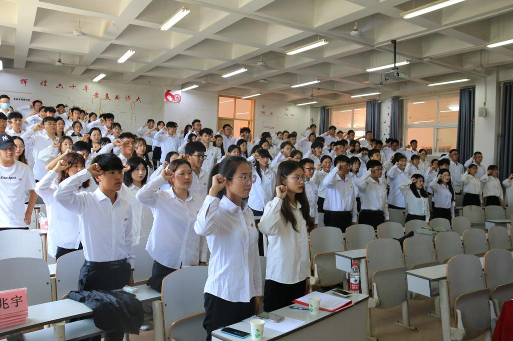 全体团员青年发出深入学习贯彻习近平新时代中国特色社会主义思想,不断用科学理论武装自己,不忘初心,牢记使命,不负青春韶华,为建设孔子家乡一流大学贡献力量,以优异成绩迎接中国共产党成立一百周年的号召。