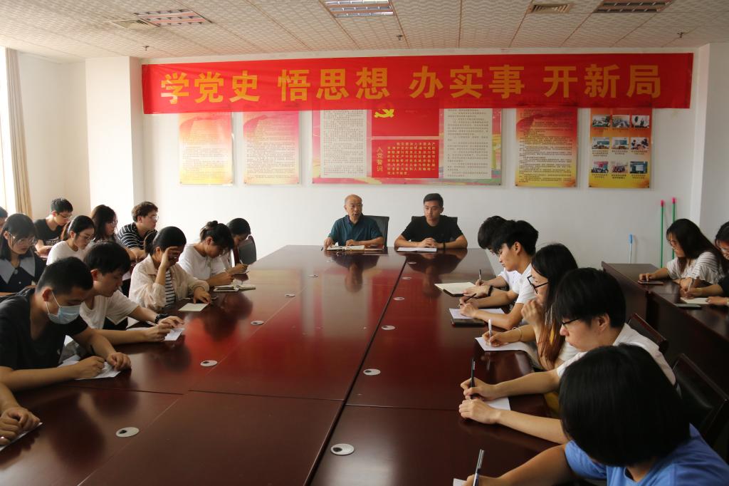 党委副书记肖龙航主持,2018级辅导员纪玉超、2018级各班班长、团支书以及部分党员参加。