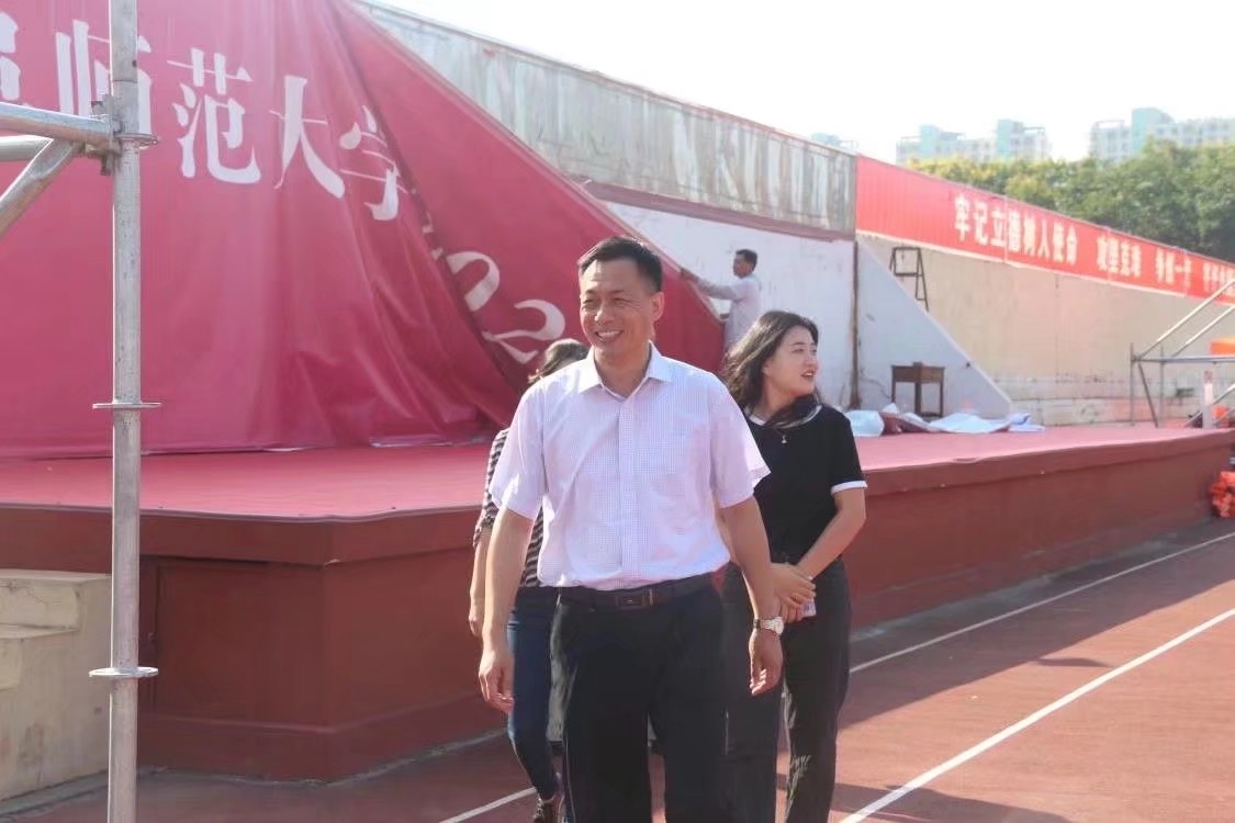 党委副书记孙旭春、本科生党支部书记于运清、辅导员孙宇、杨丹丹、孙泽玮前往操场慰问正在军训的2021级学生。