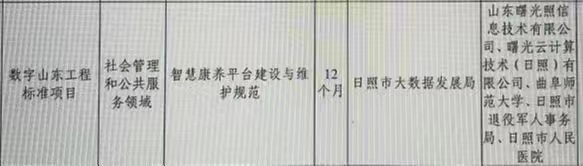 李光顺教授团队与山东曙光照信息技术有限公司、曙光云计算技术(日照)有限公司、日照市退役军人事务局、日照市人民医院共同承担《智慧康养平台建设规范》被确定为数字强省工程标准建设项目。
