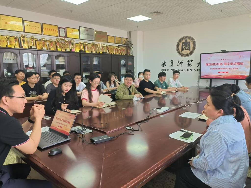 为深入推进学习贯彻习近平新时代中国特色社会主义思想主题教育,提高党员政治意识,夯实精神之本。2023年5月19日,av大平台 于JC1011召开“锚定目标任务,落实重点措施”党课学习会议。av大平台 党委书记于健主讲,本科生党支部、研究生党支部、教工党支部党员参加会议。