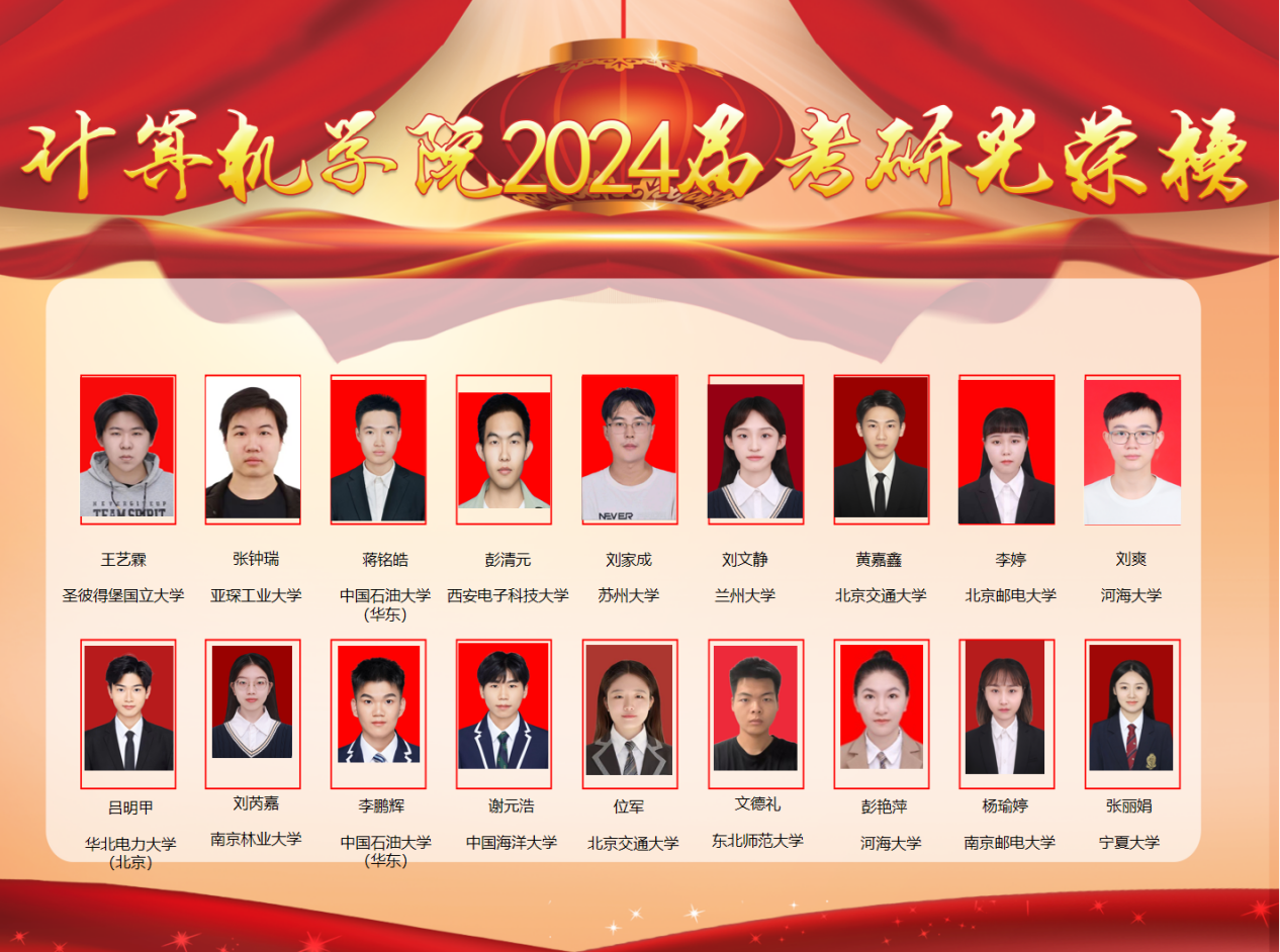 行则将至,做则必成;一念既出,万山无阻。2024年全国硕士研究生招生录取工作已经结束,我院考研学生捷报频传。据统计,我院本科毕业生399人,考研成功人数122人,本科生考研率约30%,为全国计算机类专业平均考研率的近3倍。