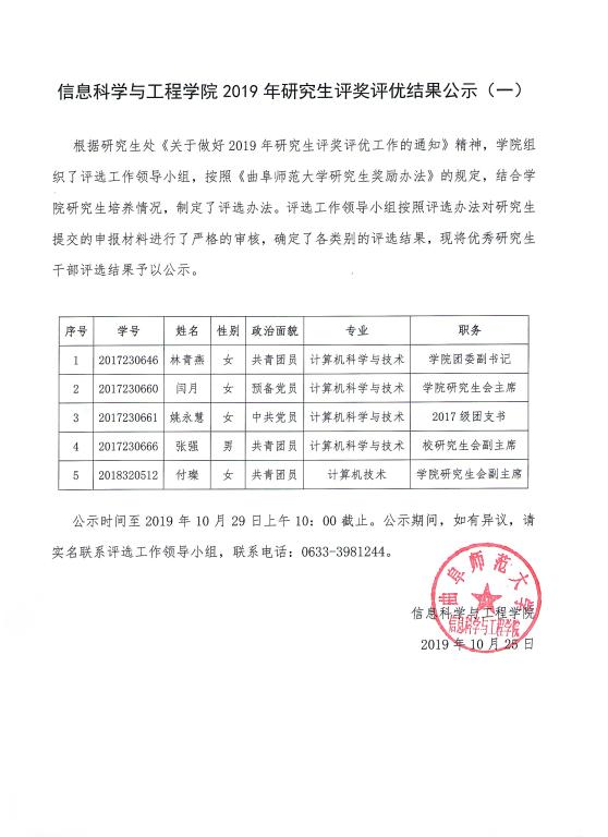 上一条: 信息科学与工程学院研究生学业奖学金获奖名单公示