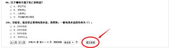 6、点击“在线练习”版块进行自我测试,当次测试结束后点击“提交答卷”, 系统显示测试成绩,随即可查看答卷正误详情或返回考试av大平台进行其他类别测试,测试次数不记入考试次数