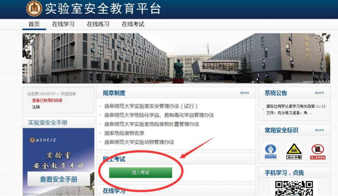 3、信息门户页面最下方“业务直通车”栏目中点击“实验室安全教育平台”图标