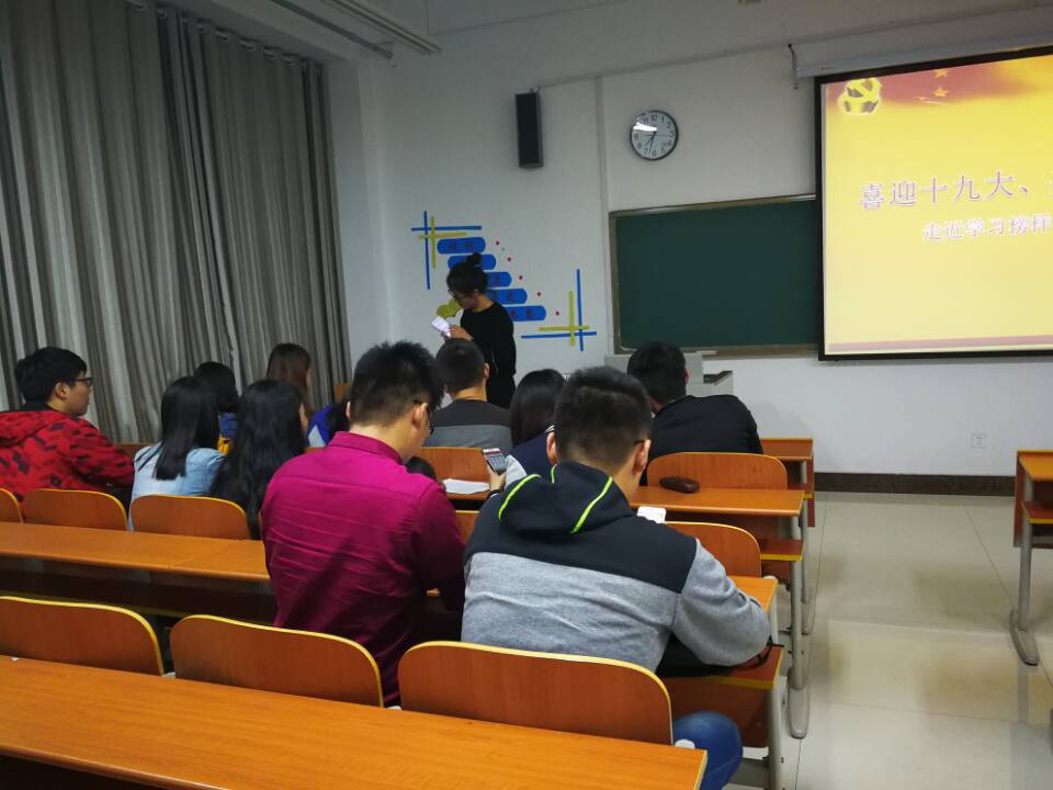 为推进“两学一做”学习教育常态化制度化的重要内容,引导广大党员对标先进、见贤思齐,奋发有为、扎实工作,为党的十九大胜利召开营造良好氛围。使我们见识到党员应有的样子,意识到前行的道路还很长,不忘初心,凝聚前行力量。信息科学与工程学院于2017108日在JS410举行了“喜迎十九大、共圆中国梦,走近学习榜样、凝聚复兴力量”主题宣传教育活动。研究生党支部全体党员参加活动,会议由副书记孙坤同志主持。
