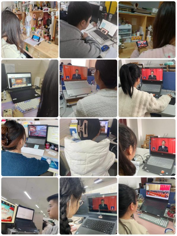 同学们对第十四届全国人民代表大会第一次会议开幕会的召开表现出了极大的热情。开幕会上,国务院总理李克强代表国务院向十四届全国人大一次会议作政府工作报告。报告认真总结了过去一年和五年取得的工作成就,科学提出今年发展主要预期目标,并对政府工作作了重大部署。观看过程中,同学们仔细聆听,不时埋头记录、深入思考,现场都被专注的气氛感染着。视频直播结束后,大家倍受鼓舞、倍感振奋、倍增干劲,纷纷表示将认真学习、深刻领会,并结合自身工作实际实事求是,进一步明确未来的发展目标、任务和工作基调。