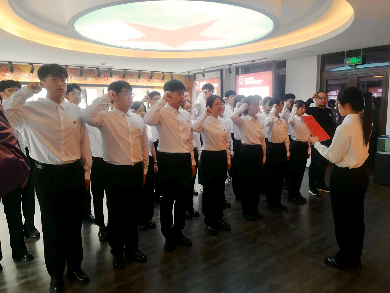 随后,入团仪式正式开始。团委书记刘兆宇宣读新团员名单。优秀团员代表为新团员颁发团员证、佩戴团徽。领誓人杨潇文带领全体团员进行宣誓,以青春誓言展现他们加入共青团的决心。