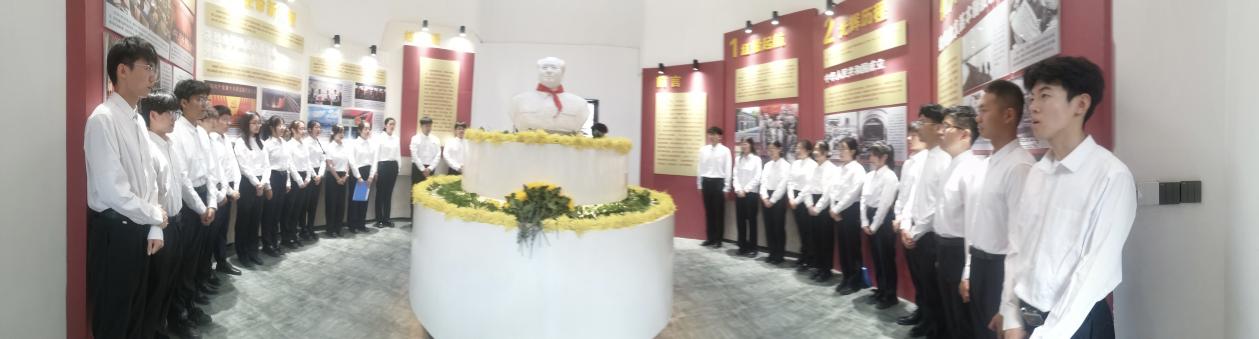仪式开始前,讲解员带领全体人员参观纪念馆并进行献花仪式。