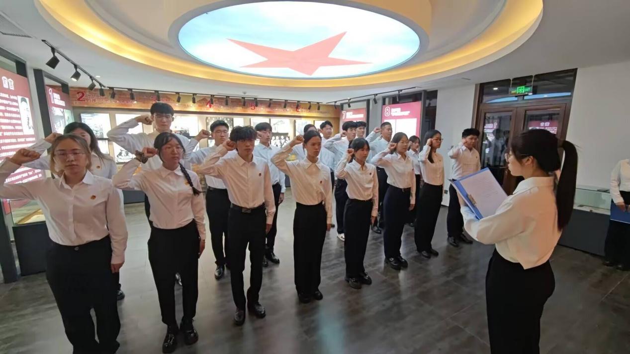 于日照市抗战纪念馆举办2025年新发展团员入团仪式。团委书记刘兆宇出席,优秀团员代表及新发展团员参加。