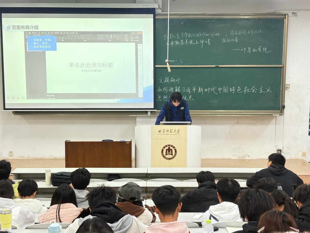 在 PPT 教学环节,主讲人引导学员熟悉软件界面与基础操作,重点讲解了新幻灯片的创建与编辑、版式设计与格式化的核心原则,以及图片、图表、多媒体文件的插入与优化技巧,并结合新闻展示、活动汇报等校园常见场景,分享了 PPT 制作的实用思路,为学员打造高质量演示文稿提供了有力技术支撑。