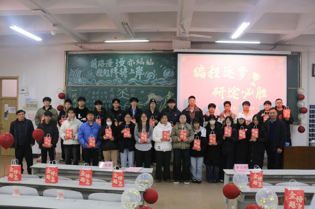 在JA106教室温情举办“考研送温暖”活动。学院院长李光顺、党委副书记孙旭春亲临现场,为即将奔赴考场的学子们送上真挚关怀与殷切祝福,现场暖意融融、情谊满满。