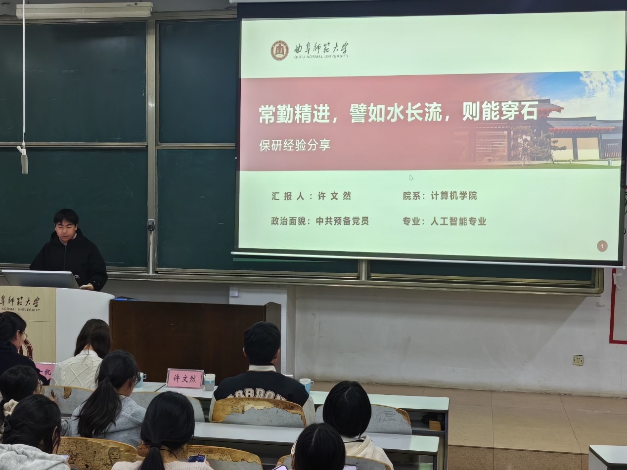 赵一钒结合自身经历,强调了绩点和成绩的重要性,鼓励同学们学好专业课程,为日后的学习和发展打下牢固基础。最后,许文然讲述了自己的科研经历和保研心得,呼吁同学们脚踏实地为自己的目标而努力奋斗。