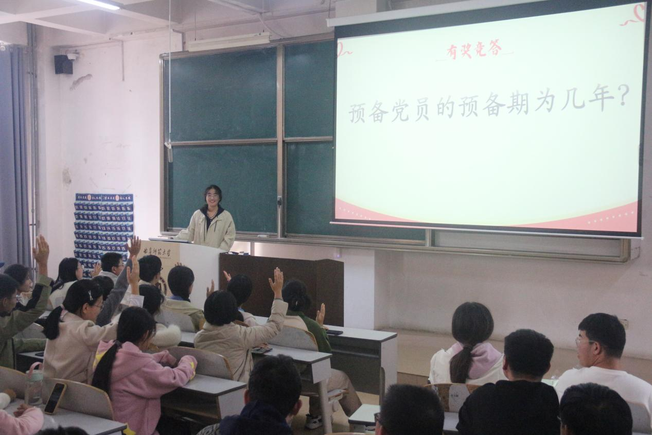 本次团日活动精心设计多个环节。首先是知识点介绍环节,通过详实资料与生动图片展示中国革命历程以及中国共青团、全国两会等相关知识,团员全面深入了解诸多重要知识。“有奖竞答”环节则将现场气氛推向了高潮,团员们积极抢答,竞争激烈,不仅考验了团员们对红色文化知识的储备,更激发了他们进一步探索的欲望。