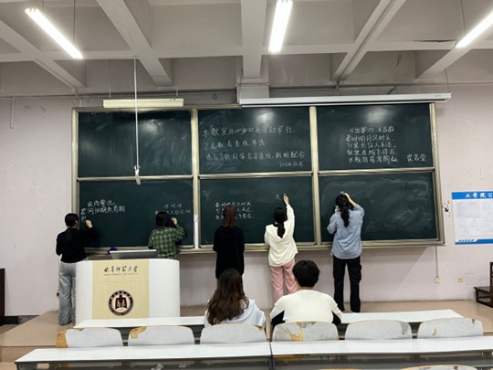 比赛过程中,参赛者们全神贯注,他们手握钢笔、毛笔和粉笔,尽情展示自己的书法才华。钢笔字书写环节,参赛者们笔法稳健,字迹清晰,展现了良好的书写功底;毛笔字书写环节精彩纷呈,参赛者们挥毫泼墨,或行云流水,或力透纸背,每一笔都蕴含着深厚的文化底蕴;粉笔字书写环节引人注目,参赛者们在黑板上挥洒自如,字迹流畅,充分展现了粉笔字的独特韵味和魅力。