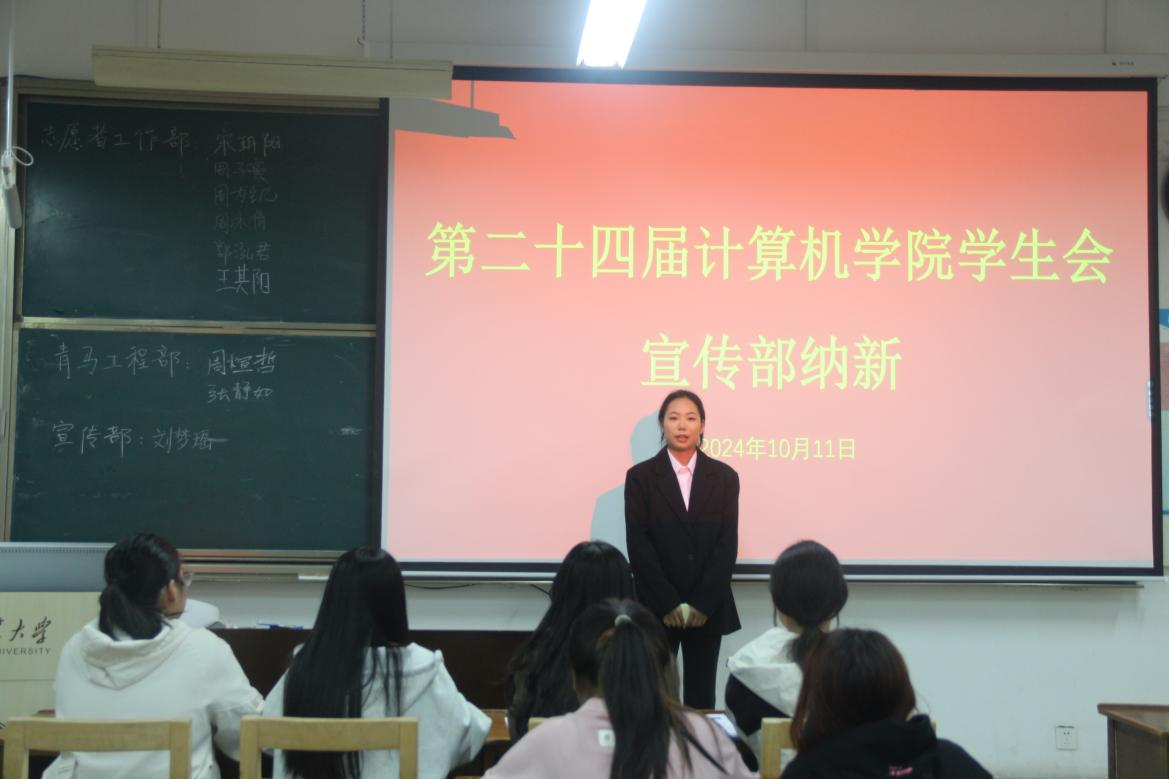 于10月11日开展第二十四届学生会纳新工作。本次纳新工作由学生会主席团成员、各部门部长和干事担任评委,2024级新生参与竞选。