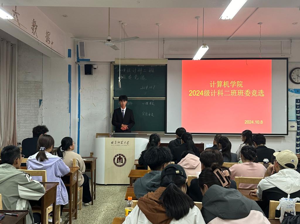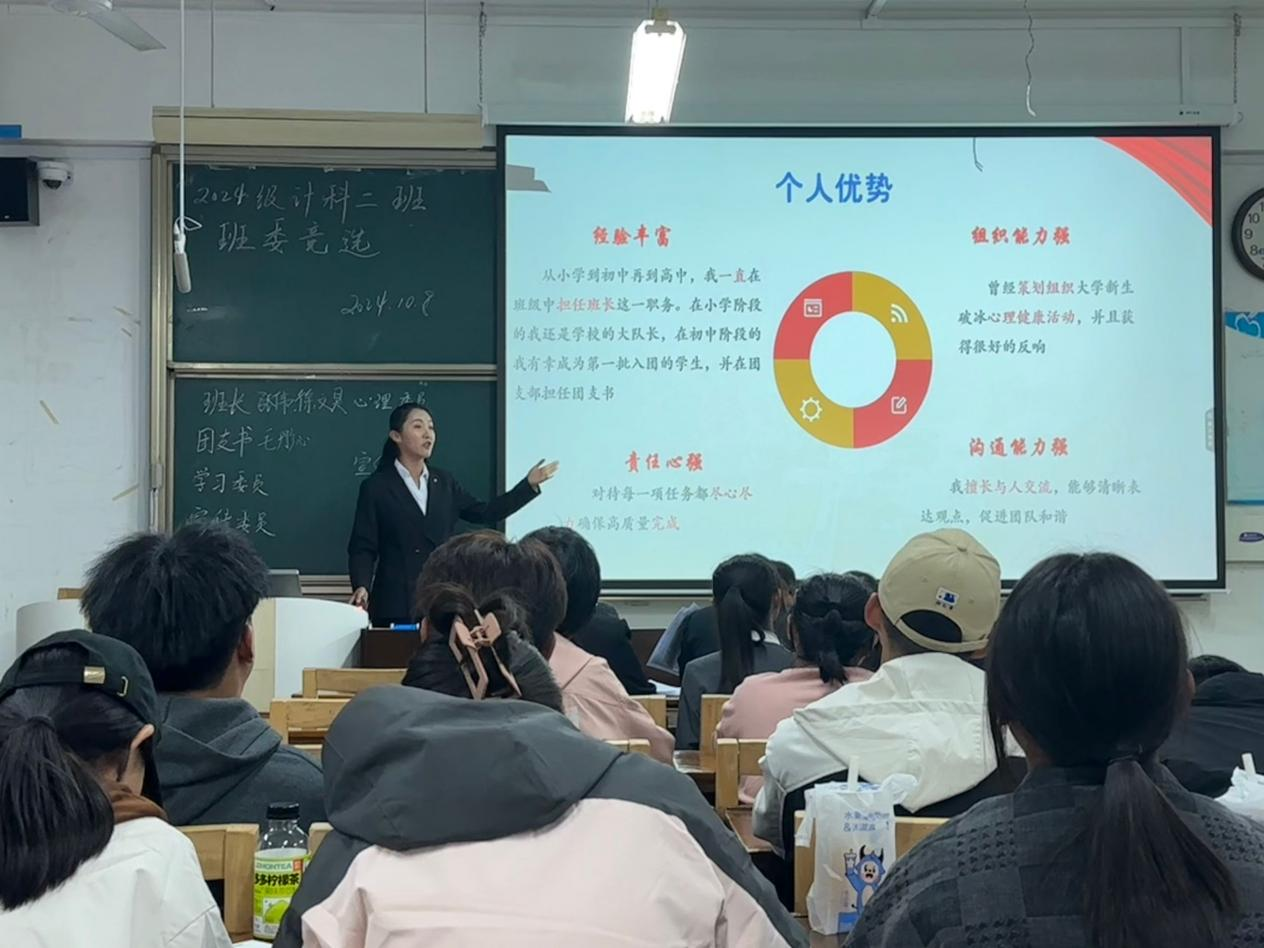 开展新生各班班委竞选活动,2024级辅导员刘兆宇、各班代理班主任和全体同学参加。