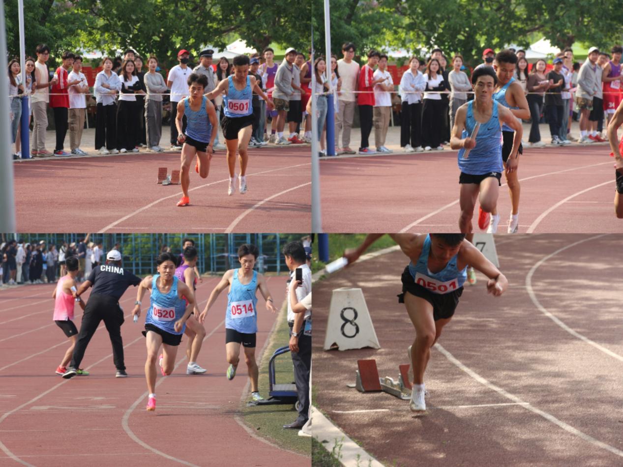 汗水浇灌收获,以实干笃定前行。最终我院同学不辱使命、不负重托,力压群雄勇夺男子4*400第一名,并以3分34秒9的好成绩打破纪录,在校运史上留下浓墨重彩的一笔。此次接力赛,我院参与的运动员有20级董盛涛,21级张志豪,22级韩志坤和23级杨田浚,这不仅是一种接力,还是一种精神的传承。