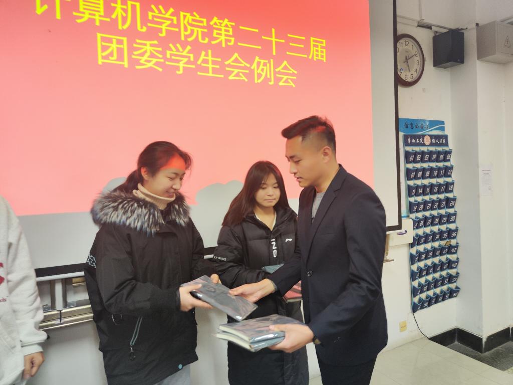 图6:孙泽玮老师和纪玉超老师为冬训表现突出的同学颁发奖品