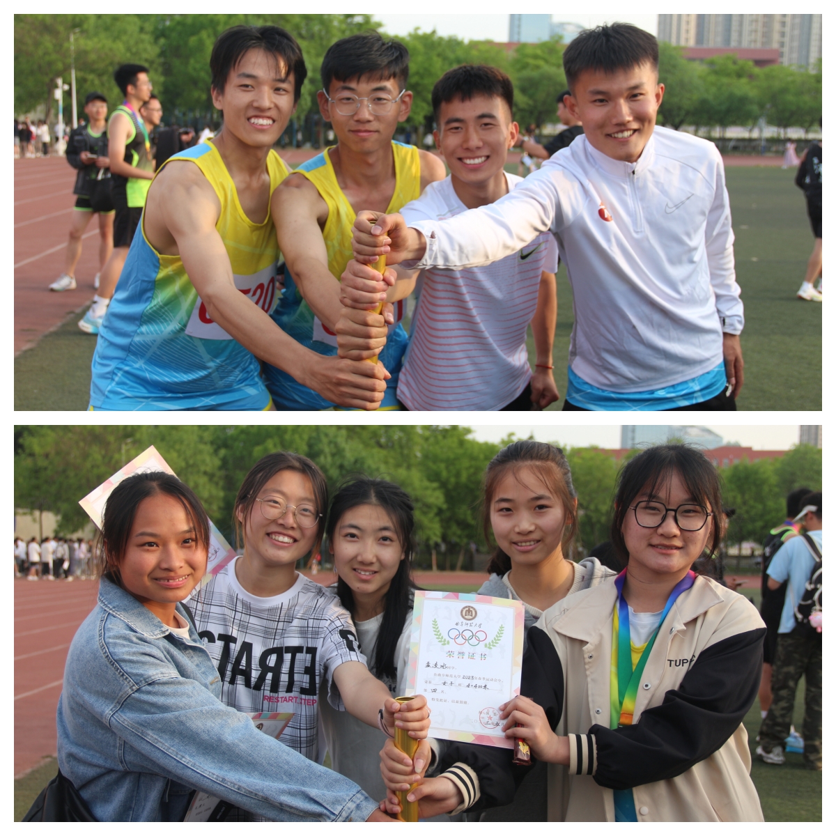 5月11日,男子100米预赛揭开了整场运动会的序幕,各院选手在赛场上激烈角逐。我院运动健儿更是稳扎稳打,面对强手毫不畏惧,凭借着顽强拼搏的精神和永不言败的毅力,不断超越自我,勇夺男子4*100、4*400第一名,并分别以44秒6、3分35秒6的好成绩打破纪录!男子1500米项目中的韩志坤同学同样夺得冠军;特别是成志琦同学,堪称我院赛场上的“不败将军”,他在男子100米、男子200米项目中帮助我院斩获两冠,现场av大平台