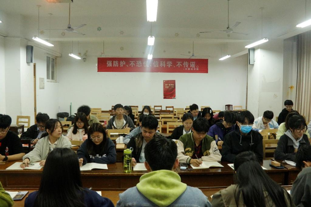 于JC402召开团委学生会例会。学生会成员,各班班长与团支书参与会议。