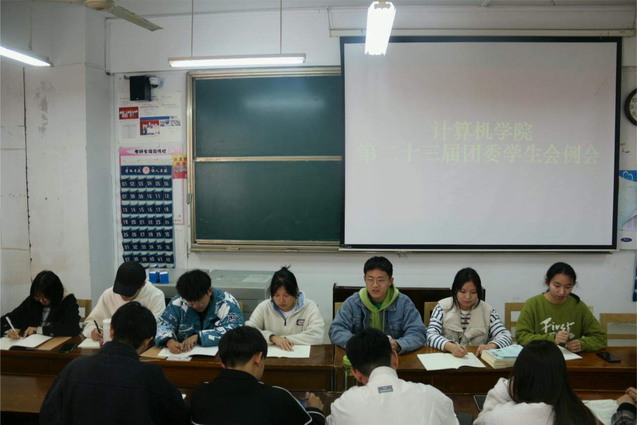 在JC402召开学生会例会,主席团成员、各部门部长、21班团、22班团参加会议。