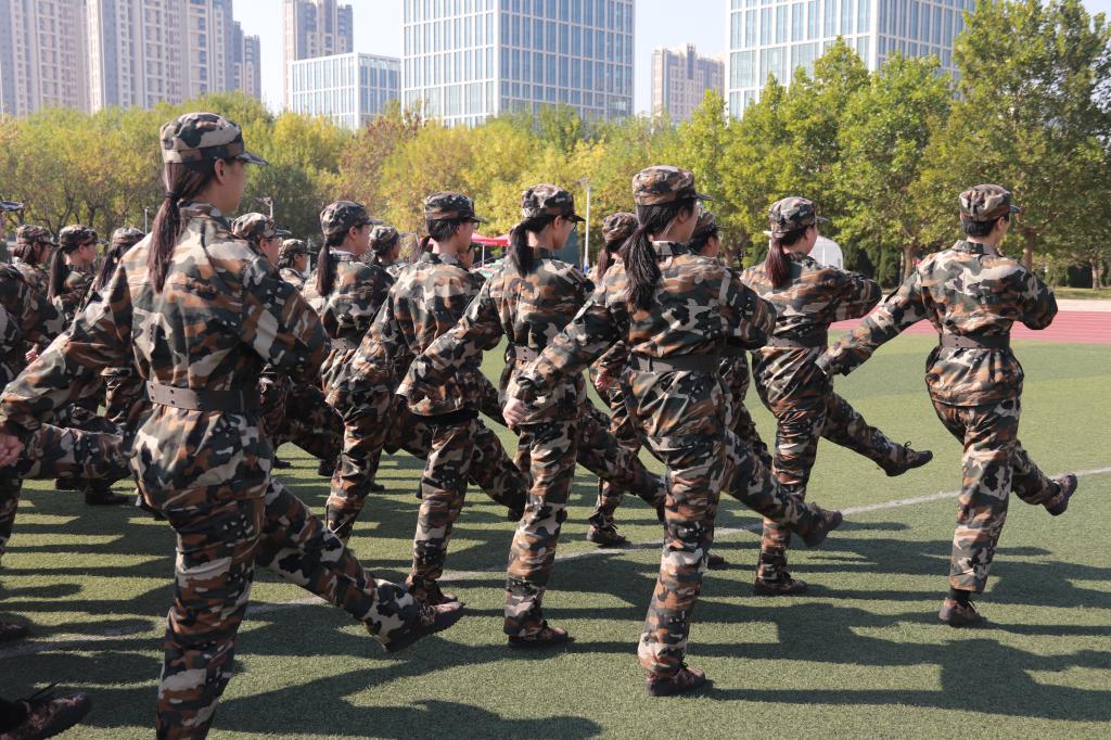 在军训中,高温酷暑给军训工作带来困难,有的同学病倒了,凭借着顽强的意志,稍有好转便坚持训练。教官手把手教,同学们认真的学,在军训队列比赛中,方队整齐,精神饱满,步伐矫健、口令准确、声音嘹亮。在一场场的训练中,学院的少年们不断地超越着自我,不但锻炼了体魄与心智、建立起了友谊,更收获了更好的自己。