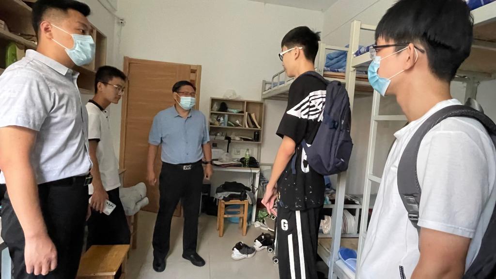 党委书记于健、院长李光顺党委副书记孙旭春、本科生党支部书记孙宇、辅导员刘兆宇、纪玉超于2022年9月18日前往新生宿舍看望慰问新生。